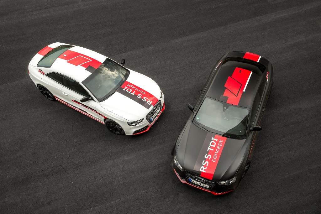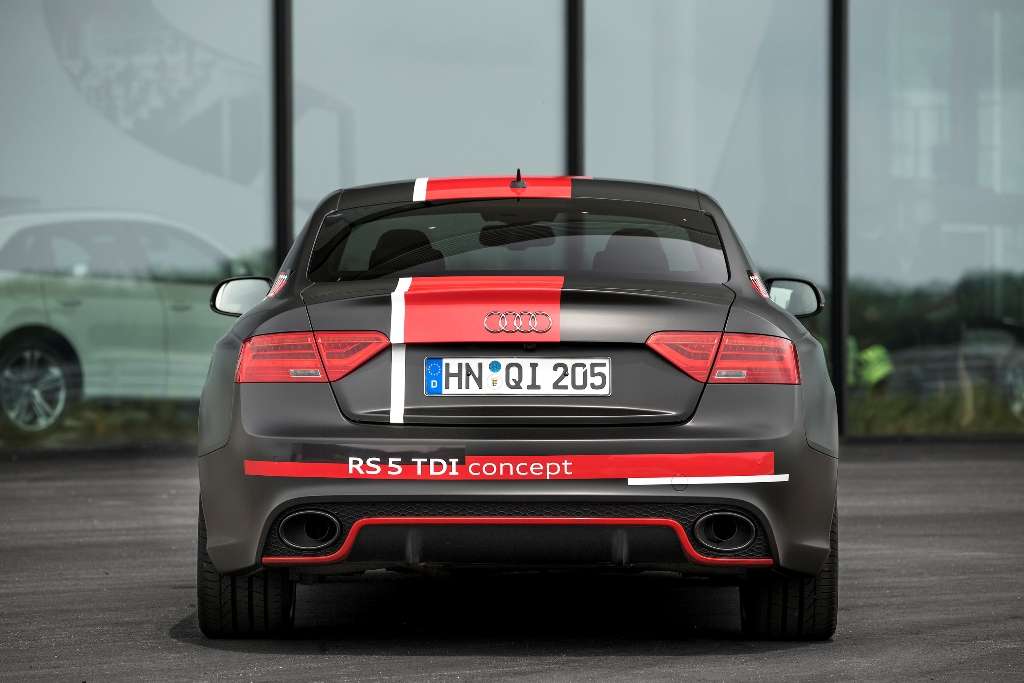 Es ist Audi außerdem gelungen, den Dreiliter-TDI frei nach oben drehen zu lassen. Hochgeschaltet wird bei 5.500 U/min. Subjektiv glaubt man, dass noch einiges mehr ginge. Mit technischer Unterstützung durch jeweils einen Lautsprecher links und rechts an den Auspuffendrohren liefert der RS5 TDI zudem eine Geräuschkulisse, die einem großvolumigen Ottomotor ähnelt. „Der Unterschied zu einem Benziner ist kaum mehr zu hören“, freut sich Audi-Entwicklungsvorstand Dr. Ulrich Hackenberg.