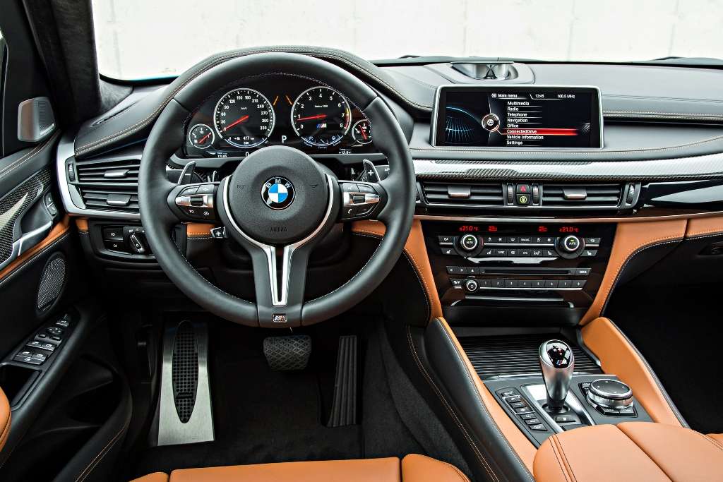 Das ist wenig überraschend, denn trotz des gegenüber dem Standardmodell abgesenkten Fahrwerks liegt der Fahrzeugschwerpunkt noch immer jenseits von 60 Zentimetern über Grund – das sind rund 20 Zentimeter mehr als beispielsweise bei einem BMW 2er Cabrio. Die mit dem letzten X6 M eingeführten Abstützpolster an der Mittelkonsole lernt man daher in Linkskurven wieder neu zu schätzen. Bei Rechtskehren muss das linke Knie des Fahrers die Fliehkräfte auffangen, weshalb man bei BMW ruhig über ein weiteres Polster an der Türverkleidung nachdenken könnte.