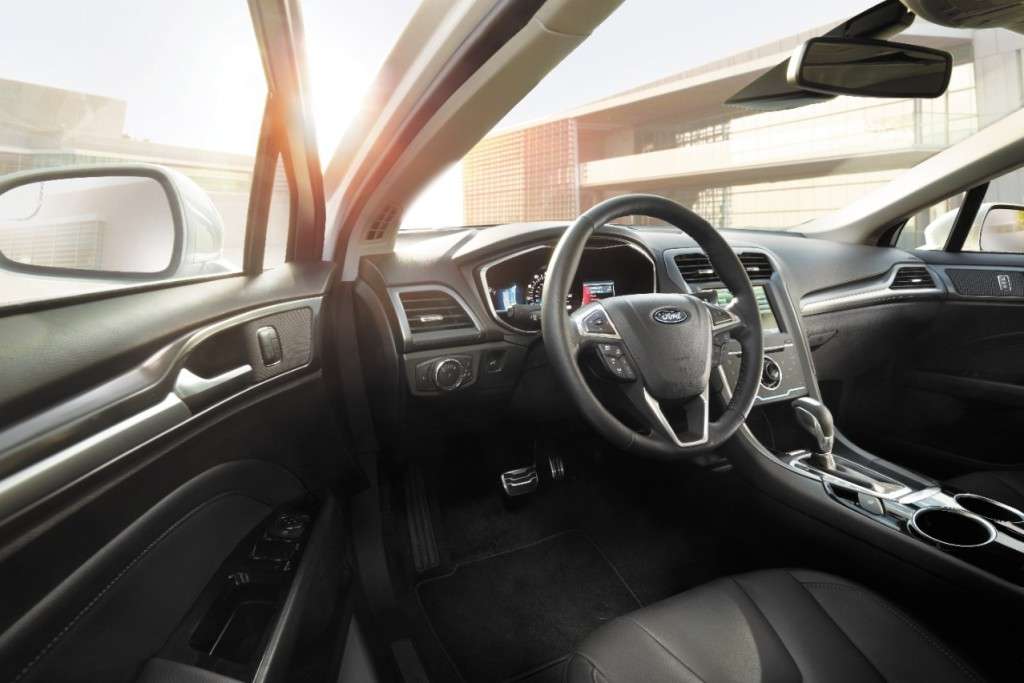 Ausgesprochen europäisch mutet das Cockpit an; Optik und Haptik entsprechen ungefähr dem Standard, den beispielsweise ein VW Passat vorlegt. Der Zentralbildschirm, über den sich das System „My Ford Touch“ bedienen lässt, bedarf allerdings einiger Gewöhnung. Ford hat in den USA schon kräftig nachgebessert, und die wichtigsten Funktionen lassen sich mittlerweile auch über feststehende Knöpfe bedienen. Im übrigen würde der nüchternen Armaturentafel etwas Dekor gut anstehen; die 2015 kommende Topversion namens Vignale dürfte den Mietwagen-Charme vertreiben. Die Vignale-Modelle treten an die Stelle der früheren Ghia-Modelle, die erst jüngst zugunsten der „Titanium“-Varianten verschwunden sind, weil man ihre Modellbezeichnung als altmodisch empfand. Ironischerweise wurde der Karosseriebauer Vignale im Jahre 1969 von niemand geringerem als Ghia geschluckt.
