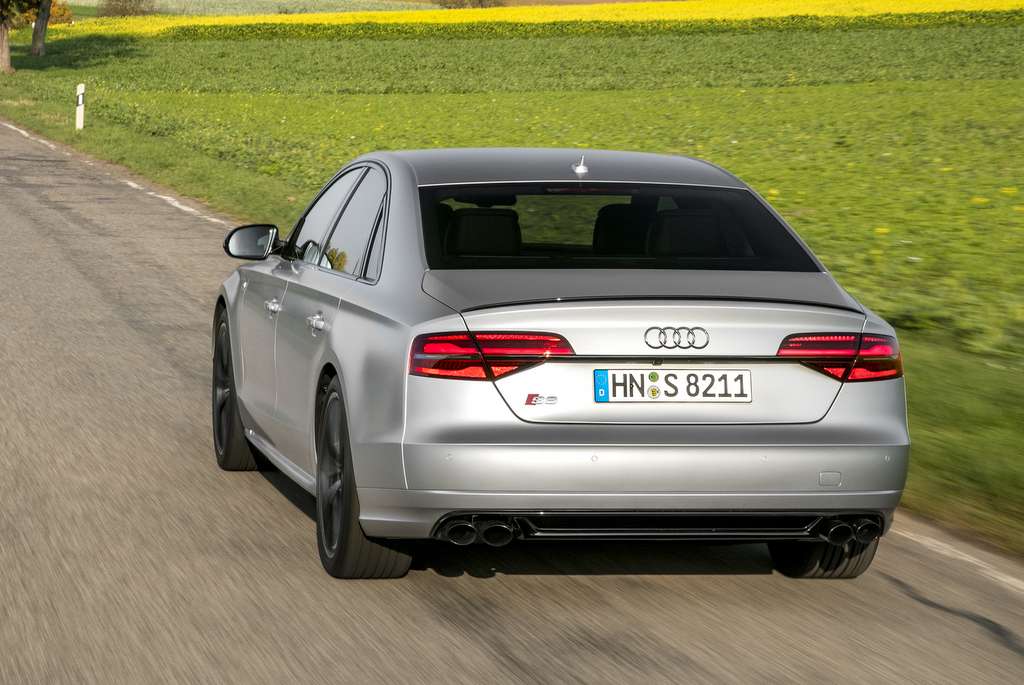 Trotz seiner überragenden längs- und querdynamischen Qualitäten bleibt der S8 plus im Grunde seines Wesens eine Luxuslimousine – und das ist auch der Grund dafür, dass er nicht auf die Modellbezeichnung RS8 hört, obwohl er von der Performance-Schmiede Quattro GmbH in Neckarsulm entwickelt wurde. Zudem hätte der optische Auftritt eines RS-Modells mit großen Lufteinlässen und verbreiterten Kotflügeln nicht zu dieser Baureihe gepasst.