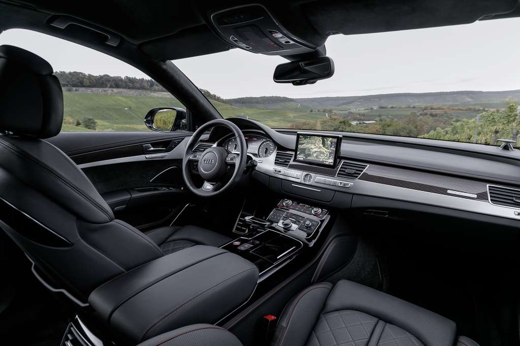 Zwar gehört ein Optikpaket mit schwarz glänzendem Zierat und einem Kohlefaser-Heckspoiler zum Serienumfang des S8 plus, und im Interieur gibt es Kohlefaser-Applikationen mit roten Zierfäden. Diese spezifischen Umfänge lassen sich jedoch auch abbestellen, und Quattro-Entwicklungschef Reil geht davon aus, dass eine ganze Reihe von Kunden ihre Vollgas-Limousine camouflieren werden – mit Chromverzierungen an der Karosserie und klassischen Hölzern im Interieur.