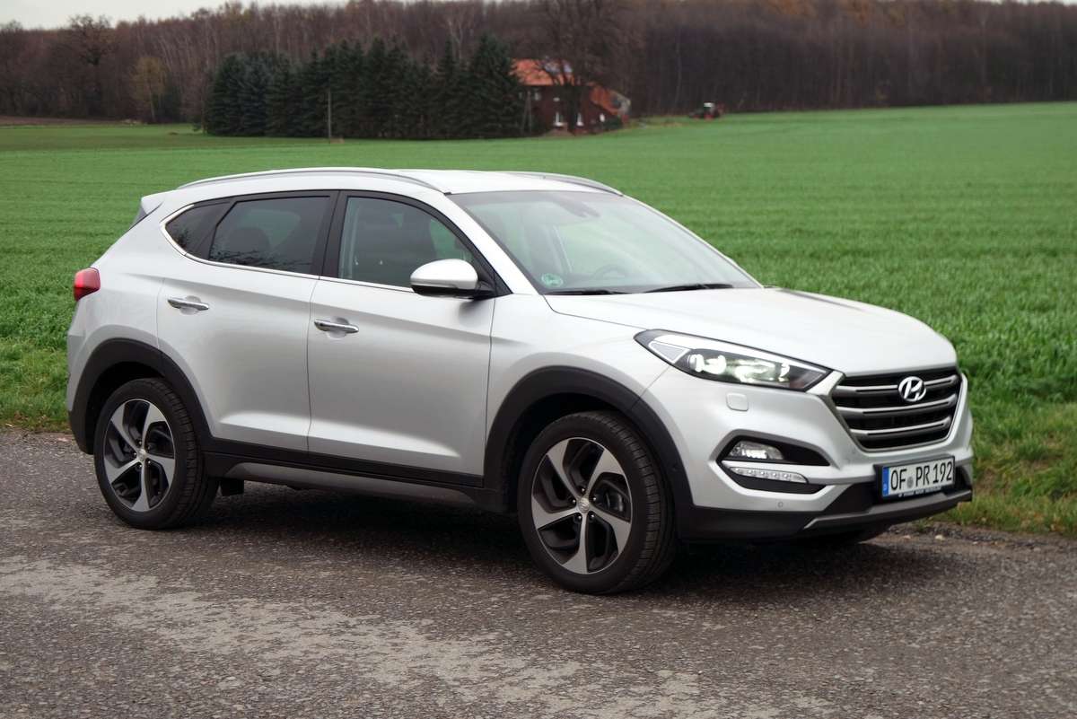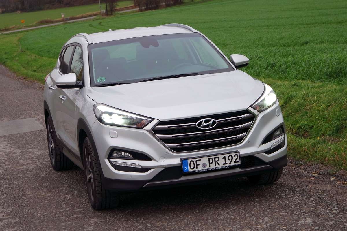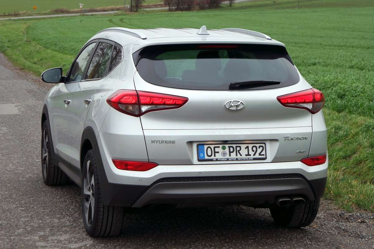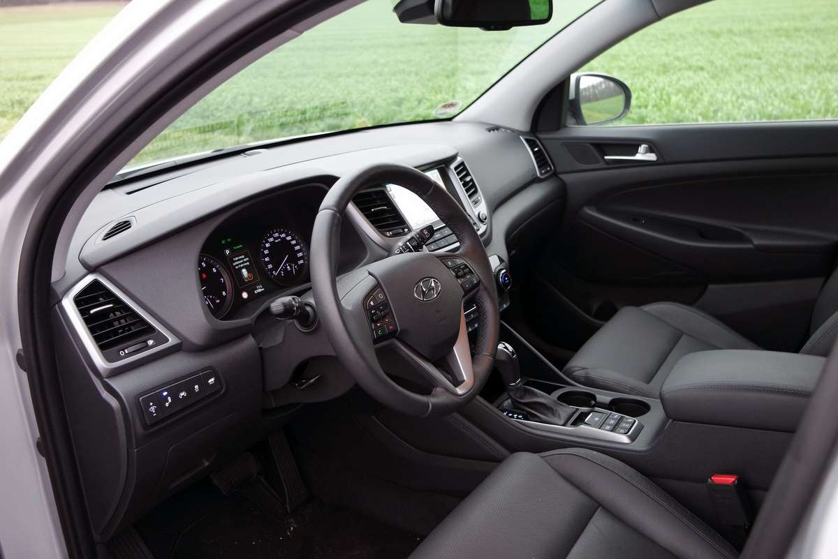 Zunächst einmal die Feststellung: Beim Preisniveau hat sich nichts geändert. Wir fuhren den Hyundai Tucson mit dem stärkeren der beiden 1,6-Liter-Turbobenziner mit 130 kW / 177 P, Sieben-Gang-Doppelkupplungsgetriebe und Allradantrieb in der besten Ausstattungsstufen „Premium“ zum Basispreis von 34.450 Euro. In der einfachen „Classic“-Version mit Vorderradantrieb und 132 PS kostet der Tucson ab 22.400 Euro in der teuersten mit dem 185-PS-Diesel in Premium 37.900 Euro. Damit liegt der Tucson am unteren Ende der Preisskala seiner importierten Wettbewerber und hält deutlich mehr als 10.000 Euro Abstand zum Premium-Bereich.