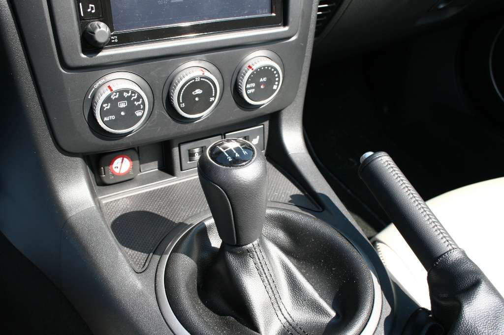 Eng geht es zu im Zweisitzer. Das Lenkrad steht fast senkrecht und die Höhenverstellung ist überflüssig, denn wer es nach unten zieht, hat es gleich auf den Knien. Nebenan muss der Beifahrer damit leben, seine Beine nicht ausstrecken zu können. Auf seine Seite der Mittelkonsole wanderte auch die Handbremse, damit der Fahrer beim Gangwechsel nicht behindert wird. Auf eine Armauflage kann verzichtet werden, denn der Getriebetunnel selbst ist eine. In den Tür-Innenseiten bleibt da nur Platz für ein kleines Netz als Ablage. Der Getränkehalter wurde kurzerhand in die seitliche Armlehne integriert, zwei weitere Cupholder finden sich in der Mittelkonsole. Hinten zwischen den Sitzen gibt es noch ein zweites abschließbares Handschuhfach, in dem sich übrigens auch die Entriegelung für den Tankdeckel verbirgt. Der Kofferraum ist nicht üppig, reicht für den Wochenendausflug zu zweit aber allemal.