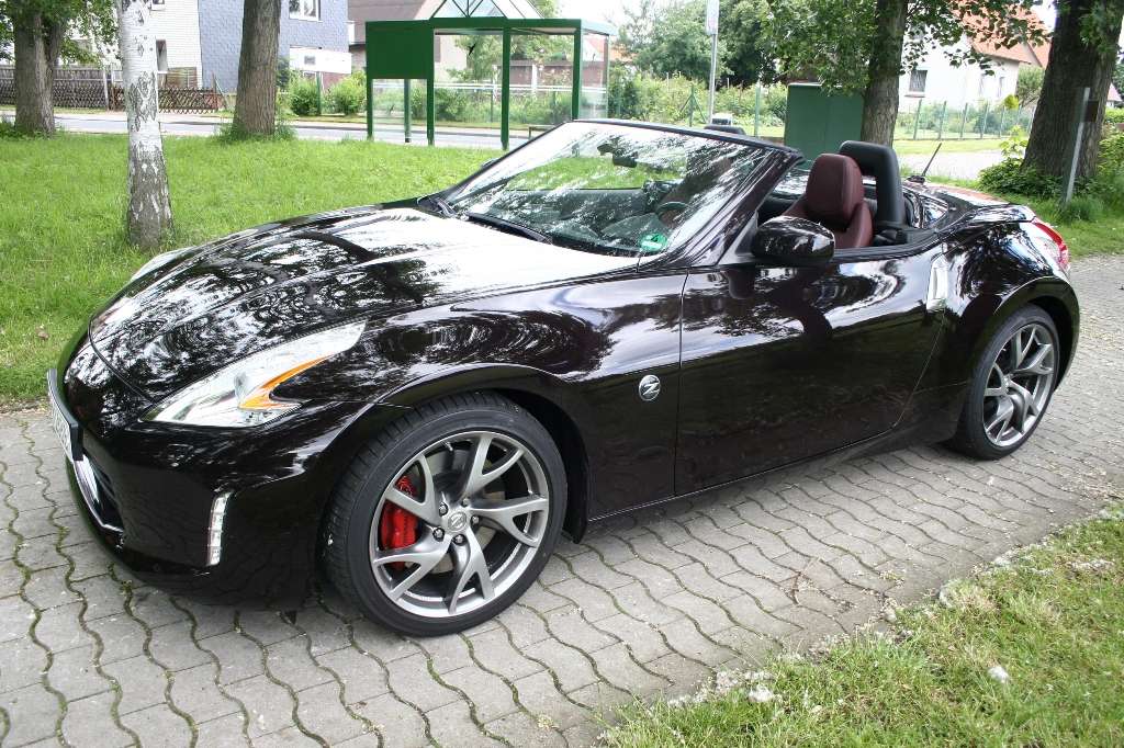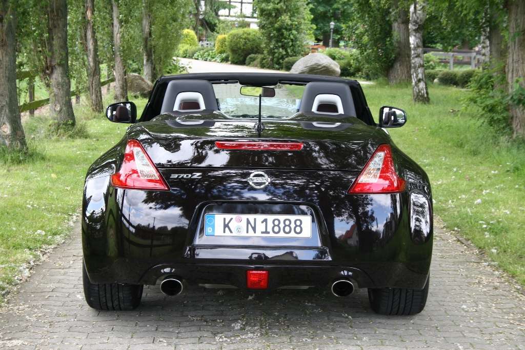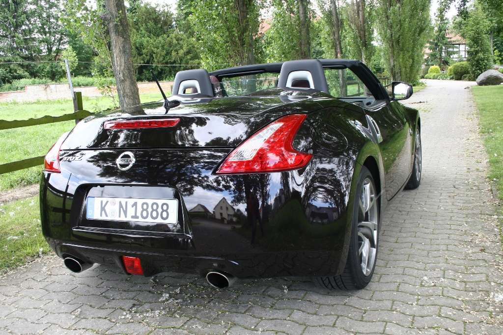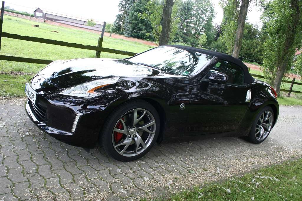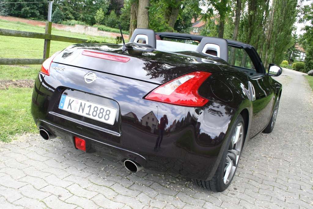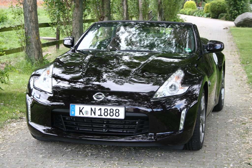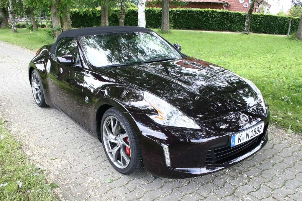 Der 370Z macht nicht nur hinten, sondern auch vorne dicke Backen. Und darf das auch. 5,8 Sekunden benötigt die Automatikversion für den Spurt von null auf 100 km/h. Auch weit über 200 km/h hinaus galoppieren die 328 Pferde des 3,7-Liter-V6 noch munter weiter. Problemlos erreicht der Nissan seine Topspeed. Erst bei 250 km/h setzt die Elektronik dann weiterem Schub ein Ende. Da umgibt den Fahrer aber schon längst ein infernales Getöse, denn Nissan stattet den Roadster mit einem Stoffverdeck aus. Ab 180 km/h wird es darunter ziemlich laut und bauschen sich die Windgeräusche akustisch zu einem Sturm auf. Bei uns pendelte sich die bevorzugte Reisegeschwindigkeit auf längeren Etappen bei 150 km/h ein, wobei sich aber auch hier schon eine nicht zu leugnende Belastungsprobe für das Gehör ergibt.
