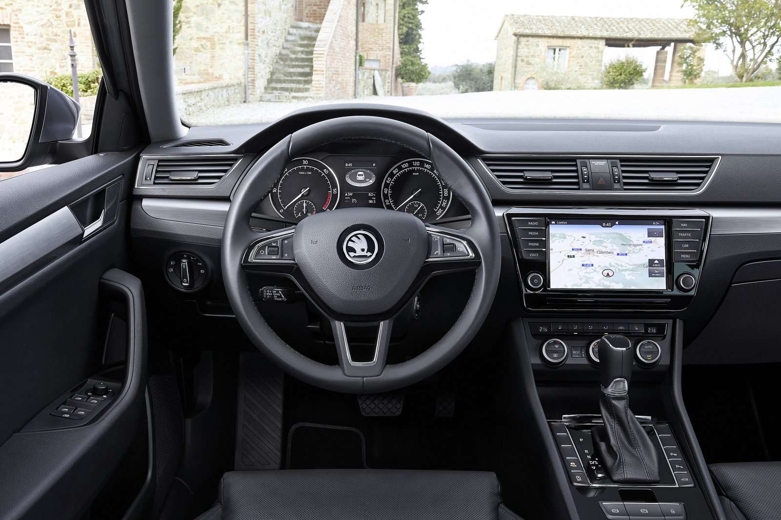 Dabei hilft der Modulare Querbaukasten des Konzerns, der zu kurzen Überhängen führt. So konnte das Team um Kaban zu Proportionen kommen, die wie die maßstäbliche Verkleinerung eines größeren Modells wirken, zum Beispiel eines Audi A8. Innen setzt sich diese Designsprache fort, aber mit einem Charakter, der eher schlicht als edel wirkt. An den Funktionen gibt es nichts auszusetzen. Lenkung, Federung, die Sechs-Gang-Handschaltung, das Multifunktons-Lenkrad, das große Display für Navigation und Infotainment über der Mittelkonsole – alles entspricht in Art, Umfang und Funktionsweise dem Konzern-Niveau, wirkt aber bescheidener als zum Beispiel beim Passat und weniger ambitioniert als bei einem Audi.