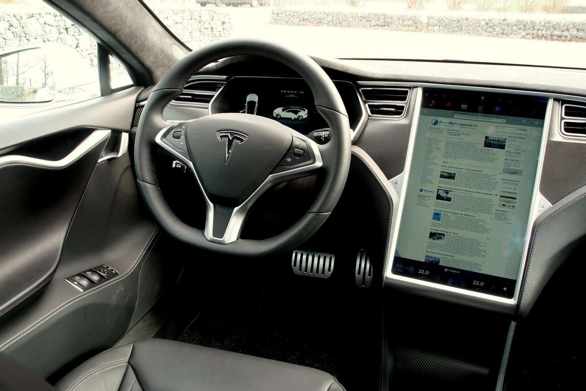 Immerhin 17 Zoll hat der größte Bildschirm, der gegenwärtig in einem Pkw zu haben ist. Er bestimmt nicht nur optisch das Cockpit, sondern ist die Kommandozentrale schlechthin: Außer den Tasten für Handschuhfach, Warnblinkanlage, Spiegel- und Fensterbedienung gibt es keine weiteren Bedienknöpfe. Navigation und Unterhaltung, Internetzugriff und Telefon, Klima, Fahrmodi und Energiemanagement werden bis hin zu Sitzheizung und Bordbuch über die senkrecht stehende Touchscreen geregelt.