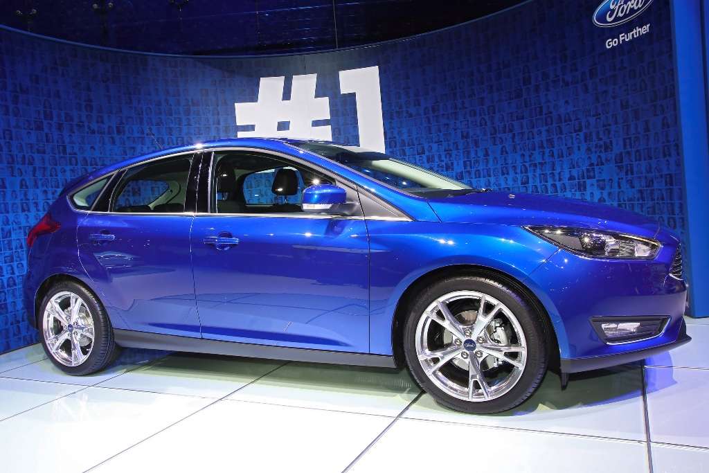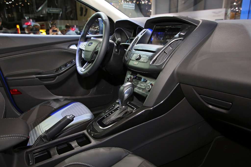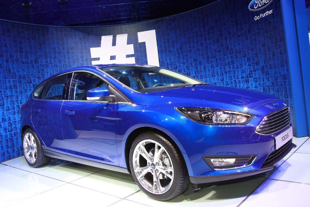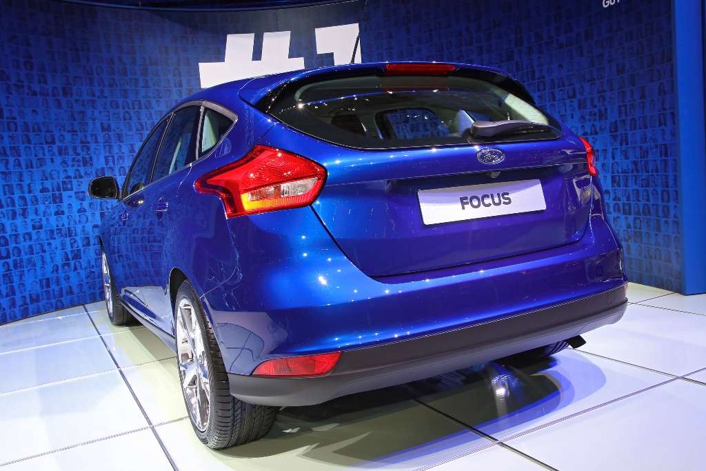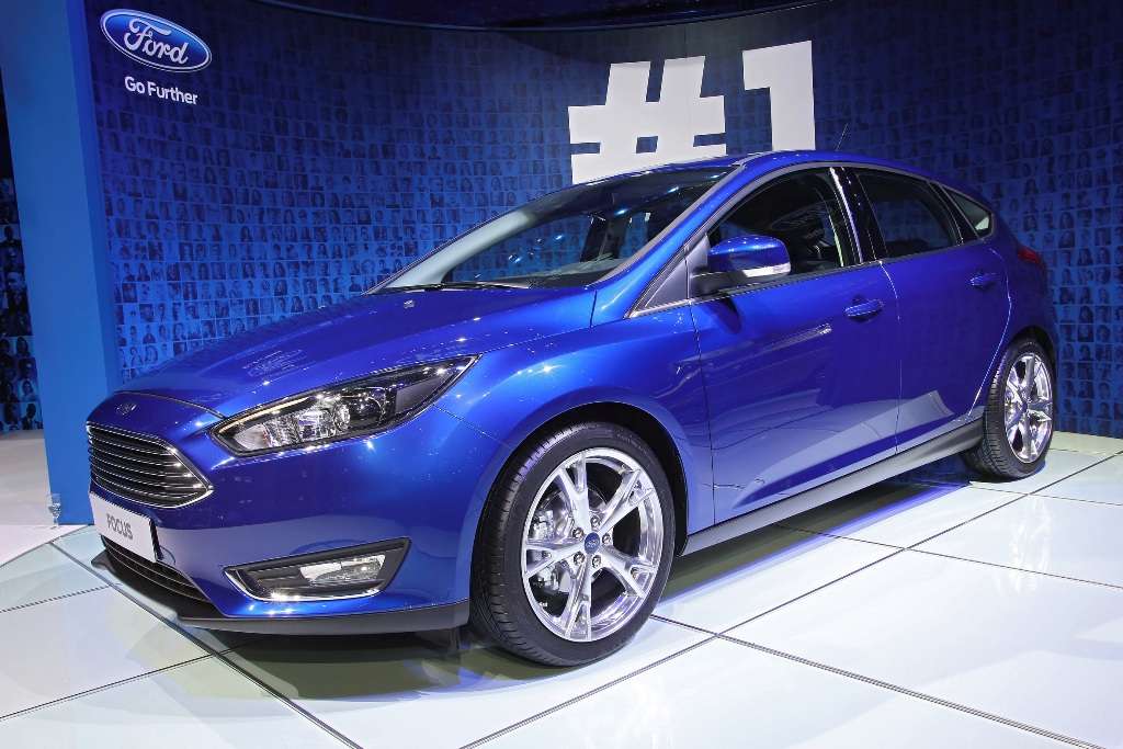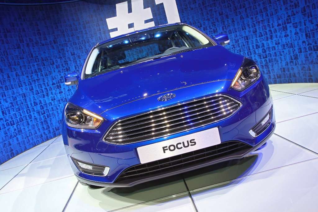 Mit neuem Gesicht, der zweiten Generation des Multimedia-Konnektivitätssystems Sync und noch sparsameren Motoren präsentiert sich der überarbeitete Ford Focus auf dem Genfer Autosalon. Auf den ersten Blick ist der neue Modelljahrgang an dem nun marken-typischen großen trapezförmigen Kühlergrill zu erkennen, der an die Sportwagen der ehemaligen Ford-Tochter Aston Martin erinnert. Mit der Reduzierung der Reduzierung der Knöpfe und Schalter hat Ford auf eine langjährige Kundenkritik reagiert.