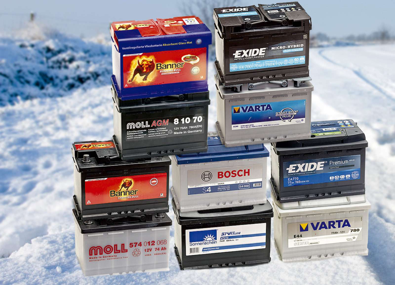 Bei den normalen Batterien verfügt der Testsieger Exide Premium (120 Euro) über die beste Kapazität. Die Summe der guten Eigenschaften bringen Sonnenschein Start Line (95 Euro) und Varta Silver Dynamic (163 Euro) auf die Plätze zwei und drei. Mit durchweg akzeptablen Ergebnissen belegen Bosch Silver S4 (152 Euro) und Moll (158 Euro) die nachfolgenden Plätze. Schlusslicht des Tests ist die Banner Starting Bull (122 Euro) mit der geringsten Punktzahl.