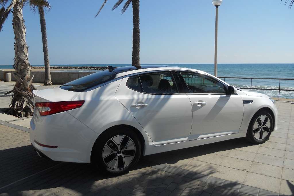 Benziner- und Elektromotor treiben die Vorderräder über ein sechsstufiges Automatikgetriebe an. Der Benzinmotor kann durch eine Kupplung vom Elektroantrieb getrennt werden. Im vollelektrischen Betrieb mit Strom aus der Bordbatterie erreicht der Optima Hybrid dann eine Maximalgeschwindigkeit von knapp 100 km/h. Die Reichweite im batterieelektrischen Betrieb gibt Kia mit 1,5 Kilometer an. Das funktioniert aber nur bei niedrigeren als der elektrischen Höchstgeschwindigkeit, zum Beispiel bei der Fahrt durch ein Dorf. Der Optima ist standardmäßig mit einem Start-Stopp-System ausgerüstet.