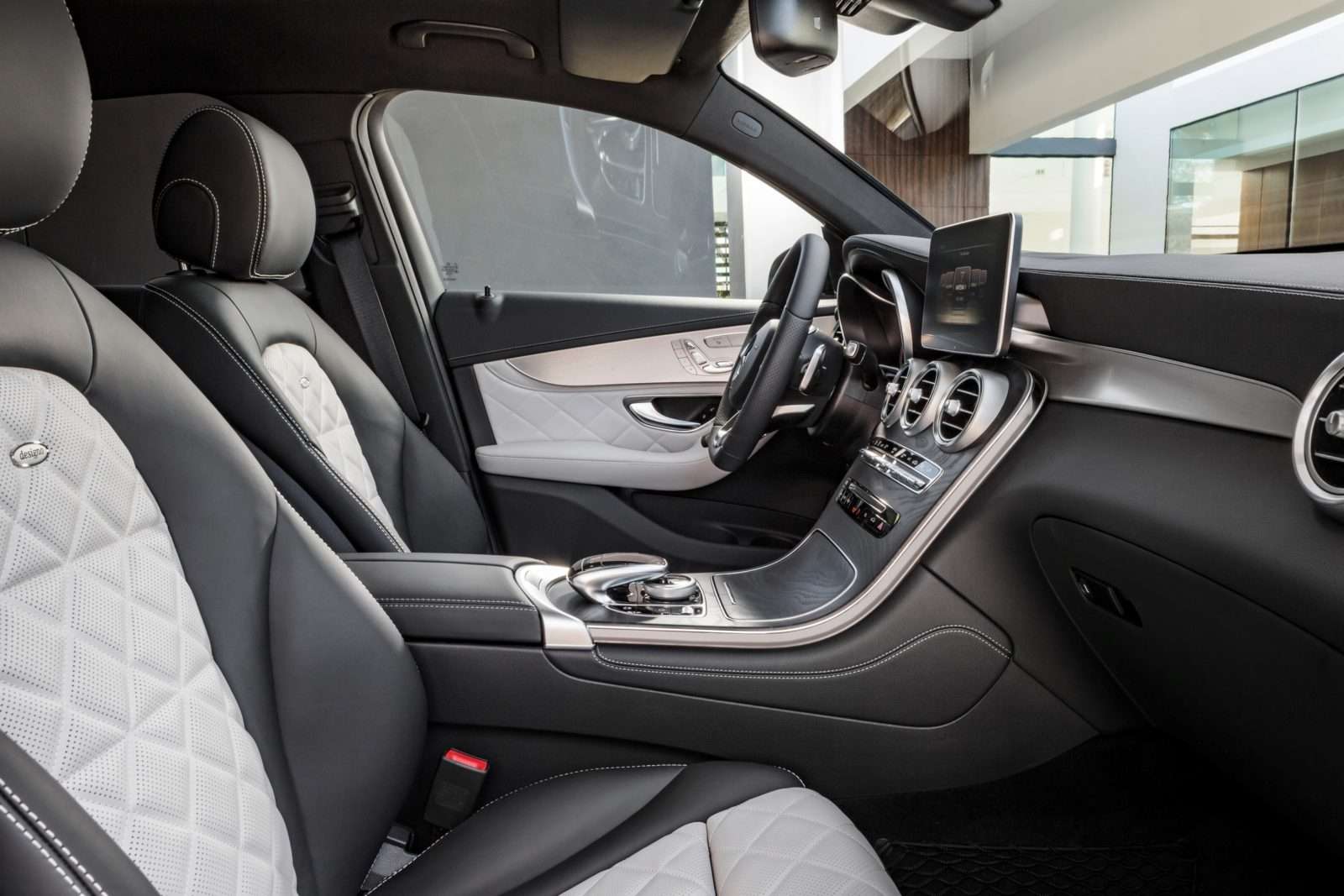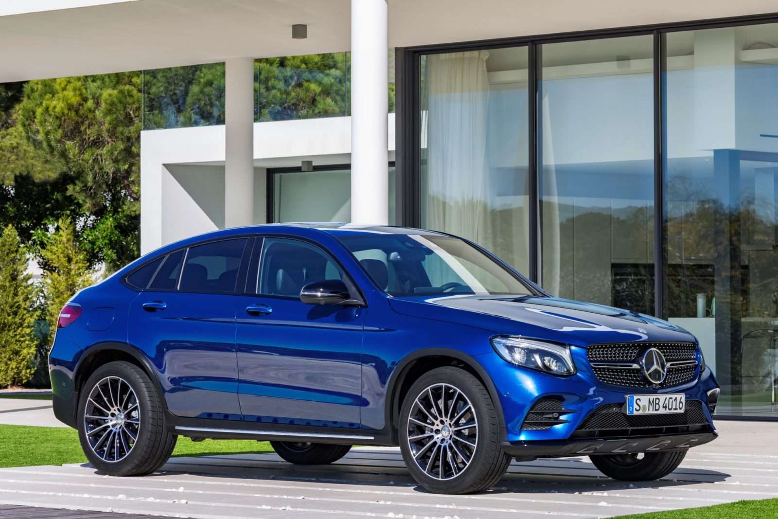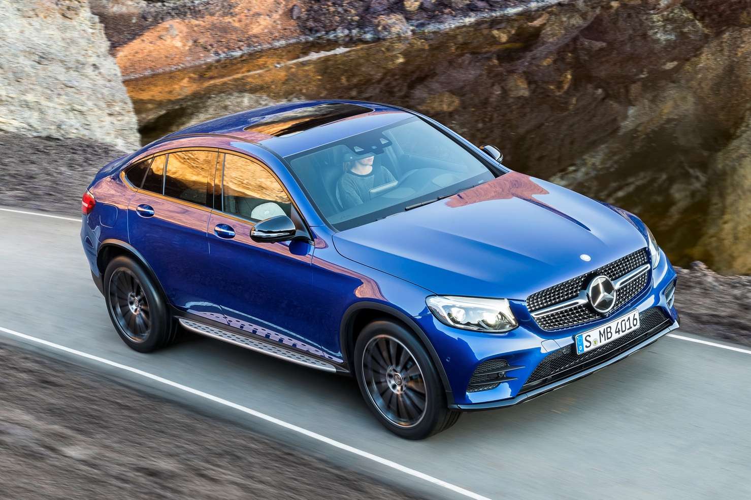 Das GLC Coupé wirkt bei einer Außenlänge von 4,73 Meter, einer Höhe von 1,60 Meter und mit 2,87 Meter Radstand dynamisch-kompakt. Damit ist das Coupé knapp acht Zentimeter länger und rund vier Zentimeter niedriger als der GLC, mit dem es die Grundarchitektur teilt. Seinen eigenständigen Charakter erhält das GLC Coupé durch den Coupé-typischen Diamantgrill mit einer Lamelle und die neugestaltete, abfallende Dachlinie. Schon die A-Säule hat eine flachere Neigung, der weitere Verlauf der Dachsilhouette ist niedriger und fällt nach hinten ab. Die Heckscheibe kommt ohne Wischer aus, weil die Strömung erst hinter der Abrisskante abreißt und somit das aufgewirbelte Schmutzwasser nicht auf die Heckscheibe treffen kann.