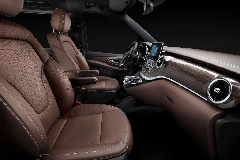 Für die Sicherheit stehen bei der V-Klasse insgesamt elf Fahrerassistenzsysteme zur Auswahl. Sie basieren auf modernen Radar-, Kamera- und Ultraschallsensoren, die in der neuen E-Klasse und S-Klasse unter dem Begriff „Mercedes-Benz Intelligent Drive“ eingeführt wurden. Serienmäßig an Bord sind der Seitenwind-Assistent, der die V-Klasse bei starken Seitenwindböen stabilisiert und der Aufmerksamkeits-Assistent Attention Assist, der vor Unaufmerksamkeit und Müdigkeit warnt. Optional erhältlich ist der Aktive Park-Assistent. Mit ihm wird das Einparken der neuen Großraumlimousine so einfach und komfortabel wie mit einem Kompaktwagen.