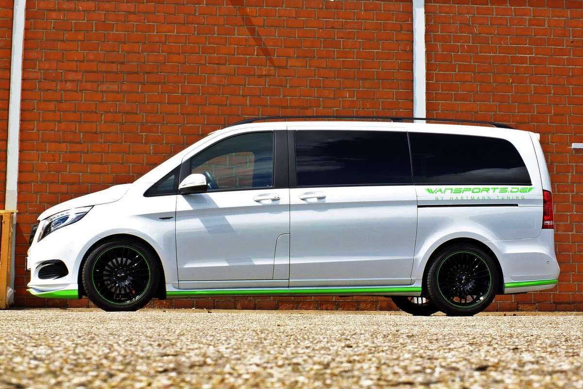Größe, Komfort und Sportlichkeit in Perfektion vereint – so präsentiert sich die Mercedes V-Klasse von Hartmann Tuning. Vorsicht im Van-Fahrerlager: es droht Liebe auf den ersten Blick. Kein Frage, hier naht individueller V-Klasse-Fahrspaß, der schwer begeistert und in den man sich leicht vergucken kann. Die aus ABS gefertigten VANSPORTS-VP-Spirit-Aerodynamikparts (Frontspoiler, Heckspoiler, Seitenschwellerleisten, Dachkantenspoiler) sind nicht nur extrem passgenau, sie stehen der V-Klasse auch ausgezeichnet. Die VANSPORTS-Designparts sind aber nicht nur gut gemacht, sondern auch gut durchdacht. So verfügt zum Beispiel die Heckspoilerlippe über eine Blende in der Mitte. Diese kann zwecks Nutzung einer Anhängerkupplung entfernt werden.