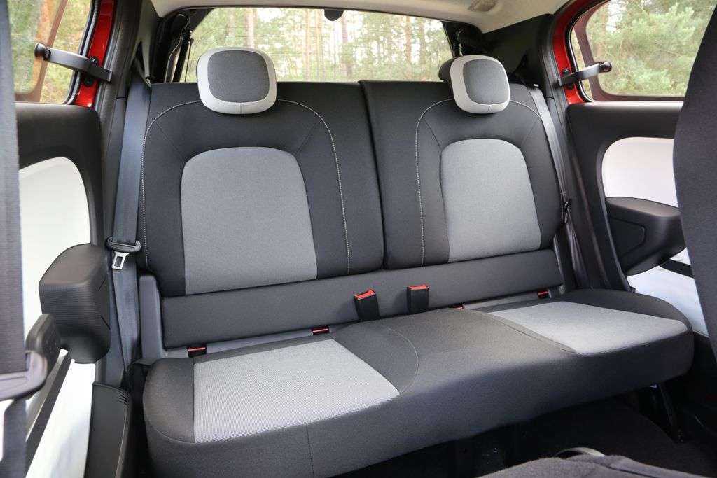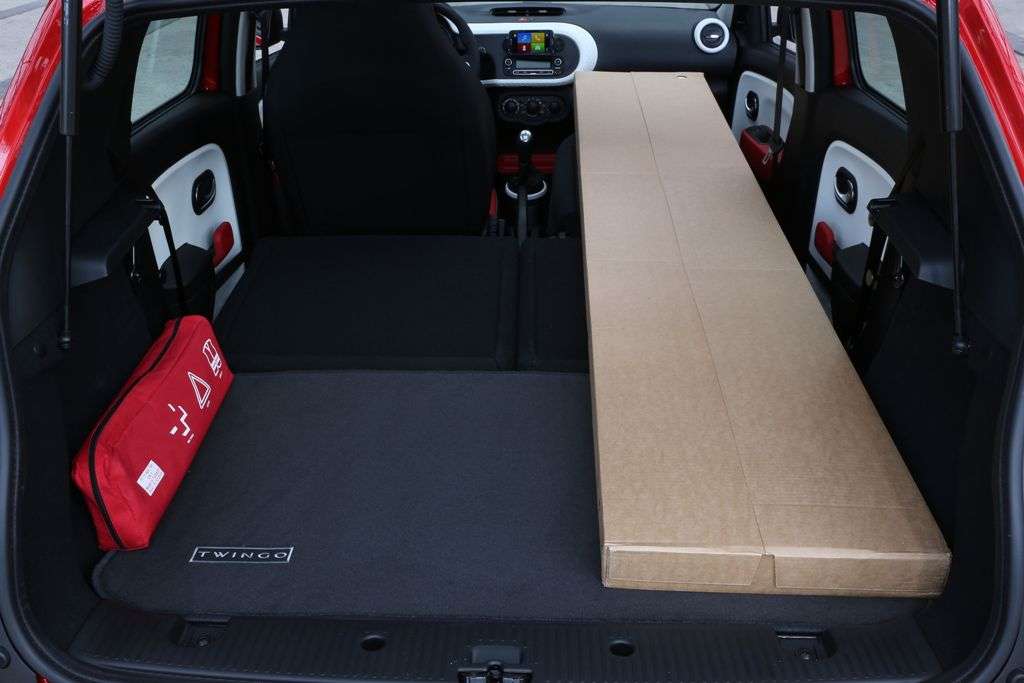 Das Kofferraumvolumen des neuen Twingo beträgt 219 Liter nach VDA-Norm. Wird die Rückbank umgeklappt, steht ein ebener Ladeboden mit 1,34 Meter Länge zur Verfügung. Die Lade­kapazität steigt auf 980 Liter. Zusätzlich ist die Beifahrersitzlehne ab Werk umklappbar, sodass sich Gegenstände bis zu 2,31 Meter Länge transportieren lassen.