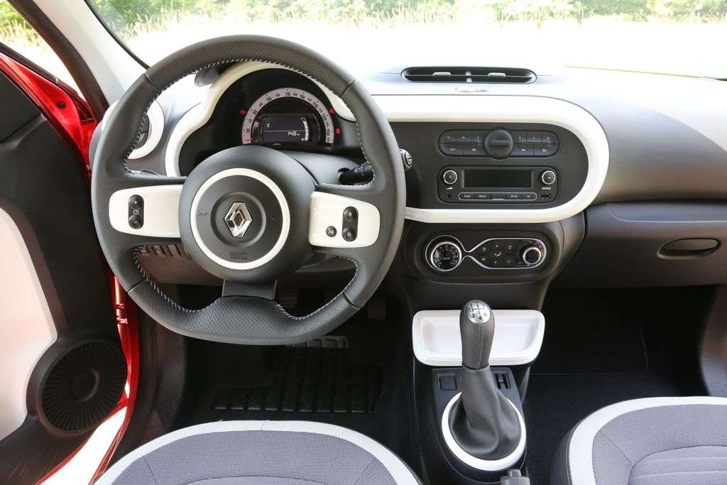 Das große Kombi­instrument, das bislang zentral auf der Oberseite des Armaturenträgers platziert war, befindet sich in der neuen Modellgeneration direkt im Blickfeld des Fahrers. Ein weiteres Kennzeichen des Twingo Innenraums sind die komfortablen Integralsitze vorne mit Außenrändern in Hellgrau (Serie bei Dynamique und Luxe). Das die kompletten Sitze umlaufende Band lässt sich auch in Rot oder Blau bestellen.