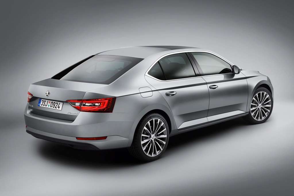 Der Radstand wuchs beim neuen Superb um 80 mm, gleichzeitig wurde der vordere Überhang um 61 mm verkürzt. Diese neue Architektur gibt dem Fahrzeug Eleganz und Dynamik. Von der Front bis zum Heck, von den großen Rädern bis zur sanft abfallenden Dachlinie besticht das neue Modell mit klarer Geometrie, markant konturierten Flächen, skulpturalen Formen, puristischer Präzision und eleganter Linienführung. Kristalline Elemente ziehen sich bis ins Detail wie ein roter Faden gleichermaßen durch Exterieur und Interieur. Gleichzeitig präsentiert sich der neue Superb mit nochmals verbesserten funktionalen Tugenden und noch mehr Platz. Form und Funktion verbinden sich zu einer perfekten Einheit.