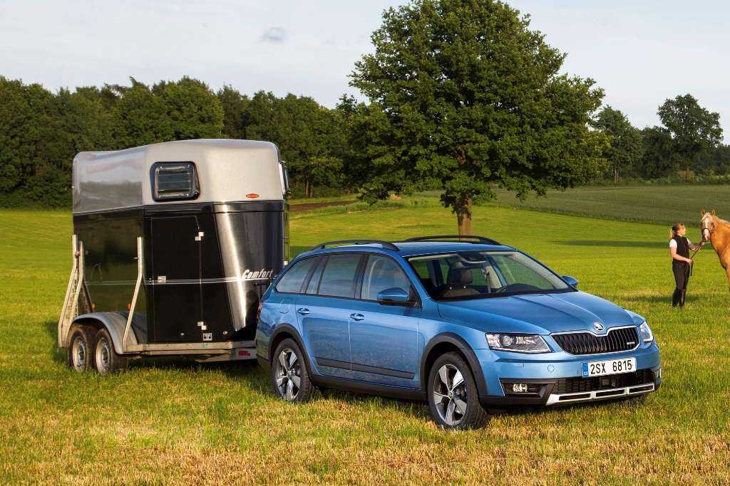 Der neue Octavia Scout bietet sich auch als Zugpferd an. Das Fahrzeug zieht bis zu 2,0 Tonnen (+25 Prozent). Durch den erhöhten Böschungswinkel von 16,7 Grad vorne und 13,8 Grad hinten meistert das Gefährt auch steilere Rampen oder Wiesen. Im Gelände unterstützt dann zusätzlich die elektronische Differentialsperre (EDS) das Anfahren auch bei niedrigen Geschwindigkeiten.