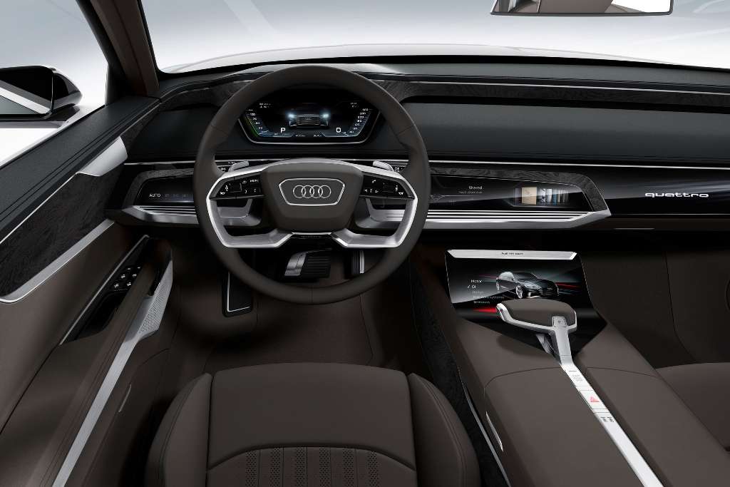 Nach dem Konzeptfahrzeug Prologue im November vergangenen Jahres auf der Los Angeles Motorshow präsentiert Audi auf dem Genfer Automobilsalon (3. – 15.3.2015) den 5,11 Meter langen Prologue Avant. Der viersitzige Sport-Kombi Er ist mit dem Plug‑in‑Hybridantrieb des Audi Q7 E‑Tron Quattro ausgerüstet, der im Showcar mit 335 kW / 455 PS noch noch mehr Leistung erzielt. In 5,1 Sekunden beschleunigt der Prologue Avant auf Tempo 100. Die rein elektrische Reichweite beträgt 54 Kilometer. Das Fahrwerk verfügt über Luftfederung, die Hinterräder lenken bei niedrigen und mittleren Geschwindigkeiten bis zu fünf Grad entgegen der Vorderräder mit.