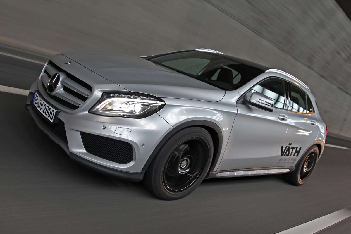 X 156 lautet der interne Code für die GLA-Klasse von Mercedes-Benz. Einen GLA 200 mit maximalen Serienwerten von 156 PS (= 115 kW) und 250 Nm Drehmoment hat das VÄTH-Team aus dem bayrischen Hösbach einer Optimierung unterzogen. Mit dem Tuning-Kit V20 zum Preis von 850 Euro zzgl. 200 Euro Montage werden dem 1.6-Liter-Aggregat durch individuelle Feinabstimmung der Motorelektronik jetzt 184 PS (= 135 kW) und 310 Nm Drehmoment entlockt.