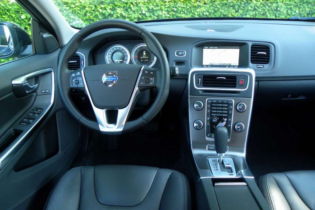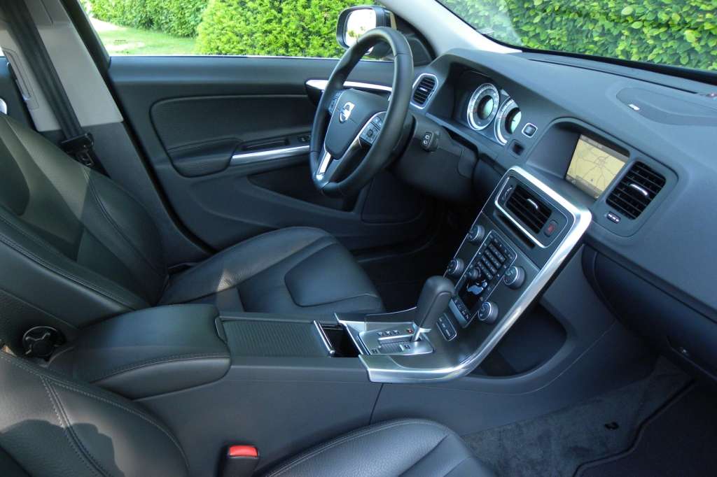 Schwedisch klar und kühl – das trifft als Beschreibung für das Äußere ebenso zu wie für den Innenraum, wenn auch nur unvollkommen. Zurückhaltung und Eleganz sind ebenfalls treffende Beschreibungen; denn auch innen gefallen die weichen, fließenden Linien der einzelnen Elemente, auf den ersten Blick erlebbar in der Gestaltung von Türverkleidungen und Armaturentafeln in einem Schwung. Die verchromte dreieckige Mittelspeiche des Multifinktions-Lenkrads mit dem blauen Volvo-Logo sticht dabei ins Auge. Auffällig auch, die scheinbar schwebende Mittelkonsole, die mittlerweile zu einem Markenzeichen von Volvo geworden ist.
