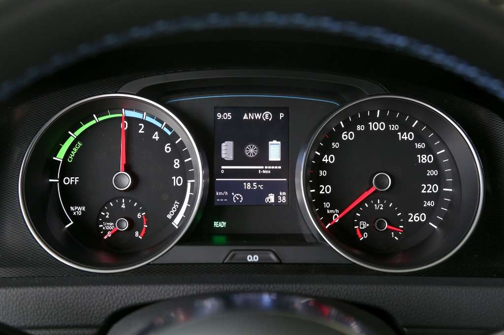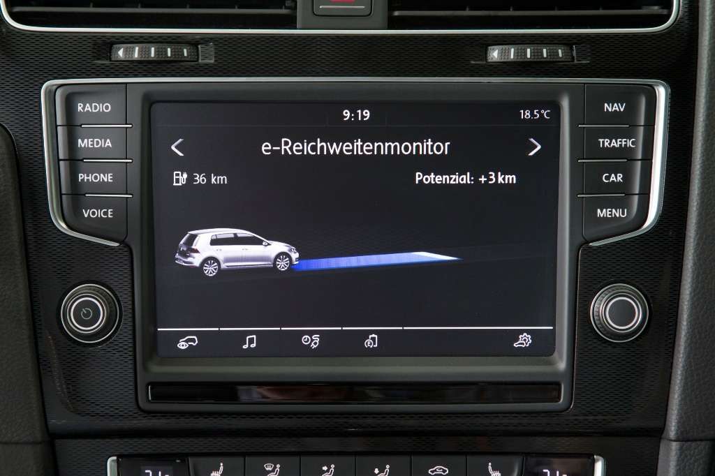 Wählt der Fahrer mittels Knopfdruck den E-Mode, so ist er ohne Emissionen und nahezu geräuschlos unterwegs. Wer überwiegend Kurzstrecke fährt, kann theoretisch wochenlang im „E-Mode“ rein elektrisch und damit emissionsfrei fahren. Dafür muss er am Abend die Hochvoltbatterie an der üblichen Haushaltssteckdose wieder aufladen. Nach drei Stunden und 45 Minuten hat die Batterie dann ihre Kapazität von 100 Prozent erreicht. Wird die Batterie via Wallbox (für die Garage / das Carport) oder an einer öffentlichen Ladestation „betankt“, verstreichen für die 100-Prozent-Ladung nur zwei Stunden und 15 Minuten. Wird der Golf GTE über Wochen nur rein elektrisch bewegt, läuft der Verbrenner zeitweise unbemerkt, damit die Leitungen geschmiert bleiben. Sorgt allein der Elektromotor für Vortrieb, ist der Golf GTE bis zu 130 km/h schnell.