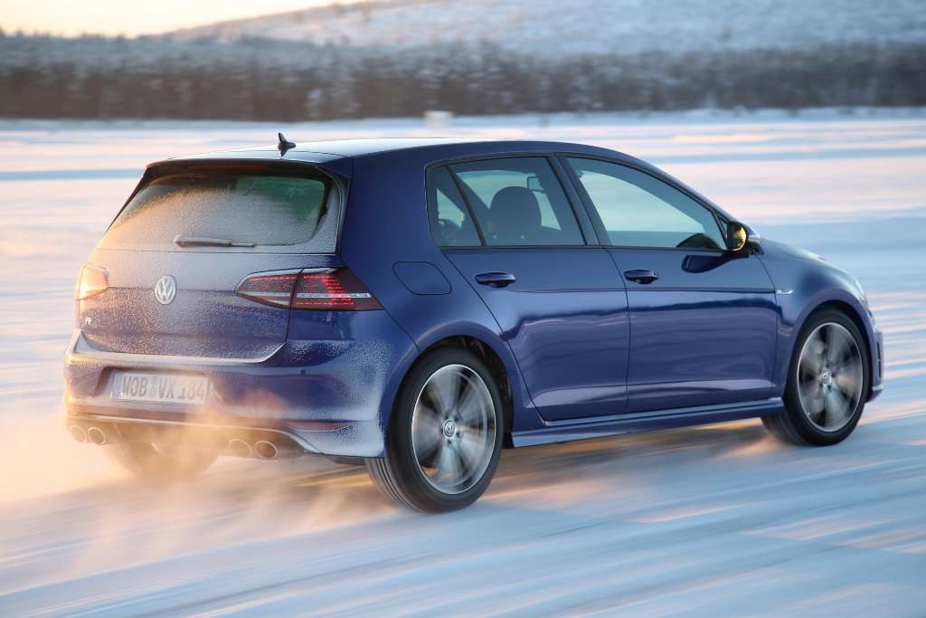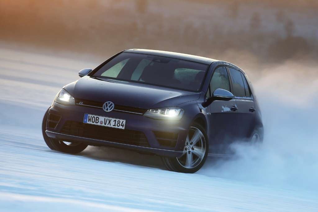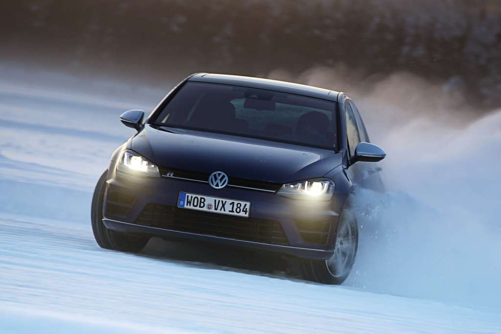 In der Nacht lagen die Temperaturen bei minus 27 Grad Celsius. Auch noch am Morgen, als wir bei minus 16 Grad auf den Hof zu den Volkswagen Golf R treten, schmerzt der erste Atemzug. Wir sollen mit dem Auto driften, von dem VW-Entwicklungsvorstand Heinz-Jacob Neußer sagt, es reize das Leistungsvermögen des Golf voll aus.