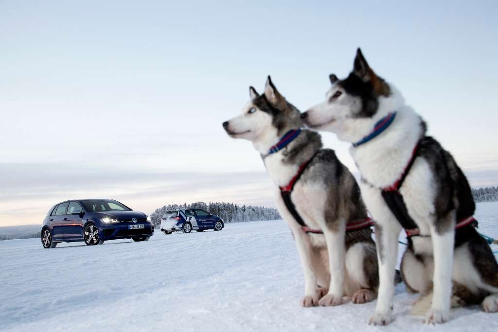 Das maximale Drehmoment steht übrigens im weiten Bereich zwischen 1800 und 5500 Umdrehungen pro Minute zur Verfügung, was nicht nur auf dem Eis von Arvidsjaur von Vorteil ist. Der Golf R marschiert beeindruckend durch die Übungen und die Handlingkurse. Daran haben natürlich auch die Winterreifen mit Spikes auf den 17-Zoll-Rädern ihren Anteil, die man uns in Deutschland ja schon vor Jahrzehnten weggenommen hat, die aber im Norden Skandinaviens auf kaum einem Auto fehlen.
