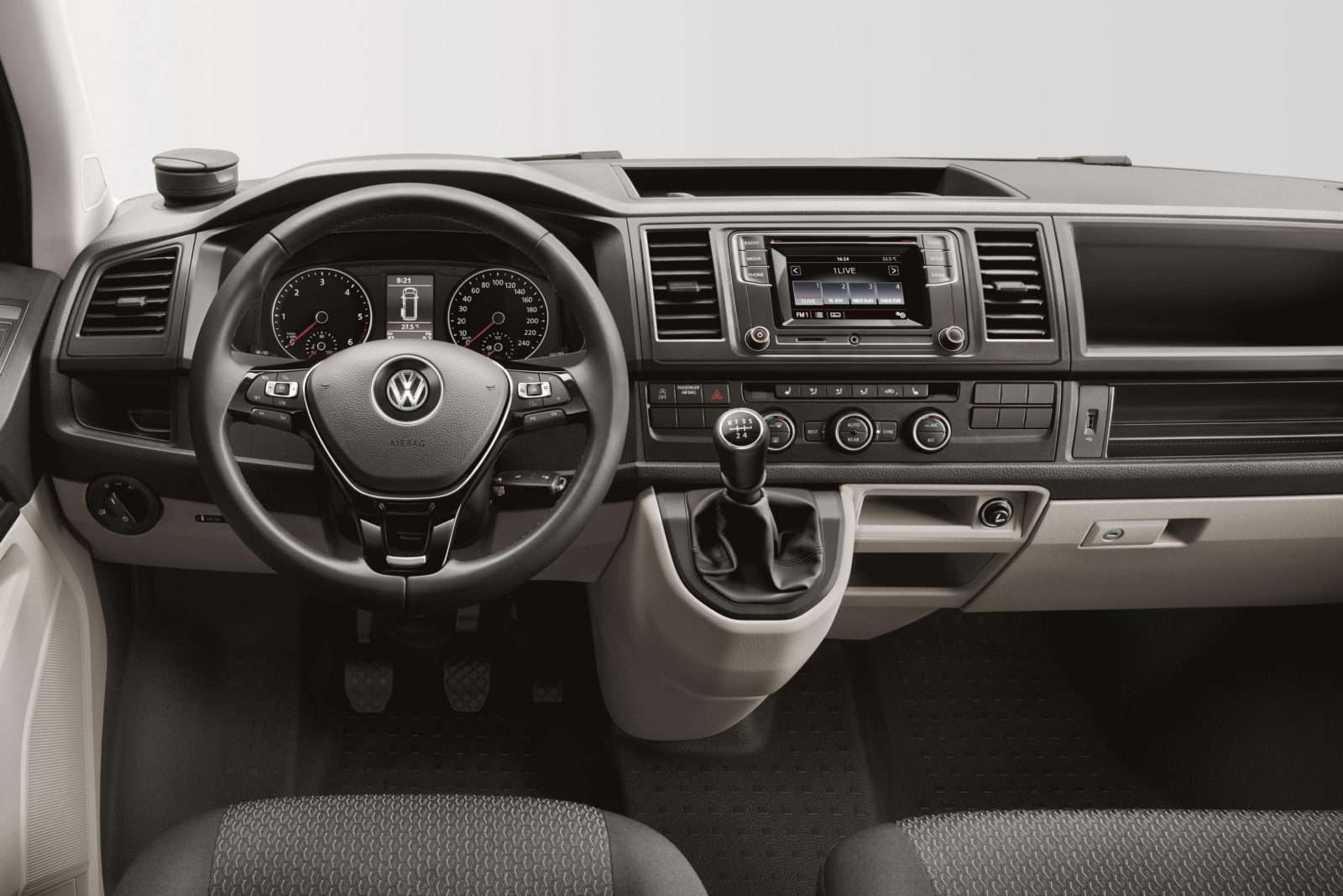 Für die Sicherheit beim Fahren sind alle Infotainment-Systeme mit einer Bluetooth-Freisprecheinrichtung ausgestattet. Beim 6,33 Zoll großen Bildschirm setzt Volkswagen Nutzfahrzeuge erstmals auf ein Display, das mittels einer Annäherungssensorik arbeitet: Sobald sich der Fahrer oder Beifahrer dem Touchscreen mit der Hand nähert, schaltet das System automatisch vom Anzeige- in den Bedienmodus. Darüber hinaus verfügen die Displays über eine Funktion, bei der über Wischgesten Listen gescrollt oder in CD-Covern der zum Beispiel auf einer SD-Karte befindlichen, eigenen Mediathek geblättert werden kann. Weiterhin gibt es je nach Ausstattungsumfang die Mobiltelefon-Schnittstelle „Comfort“. Sie beinhaltet eine induktive Antennenkopplung an die Fahrzeug-mobilfunkantenne, einen zusätzlichen USB-Anschluß und eine ergonomische Ablage für das Mobiltelefon. In den letzten Jahren ist die Nutzung des Internets auf mobilen Endgeräten wie z.B. Smartphones und Tablet PCs stark angewachsen. Dies spiegelt den wachsenden Bedarf an Informationen überall und jederzeit wider. Diesem Trend folgend sind die Navigationsgeräte „Discover Media und Discover Media Plus“ mit den Guide & Inform Diensten von Car-Net ausgestattet.